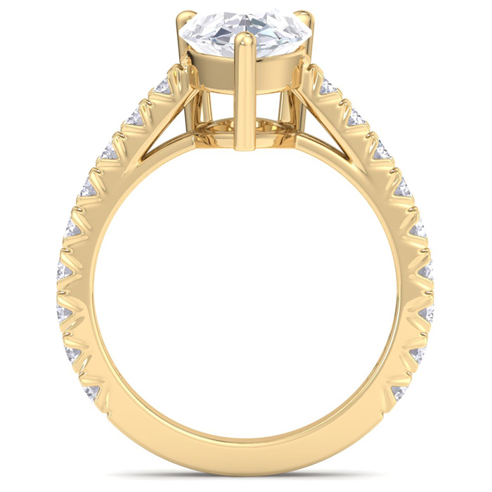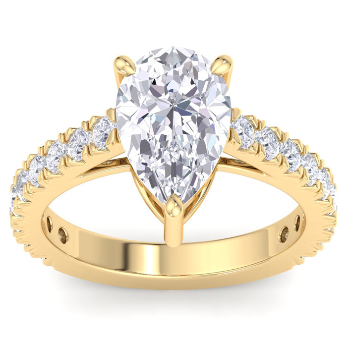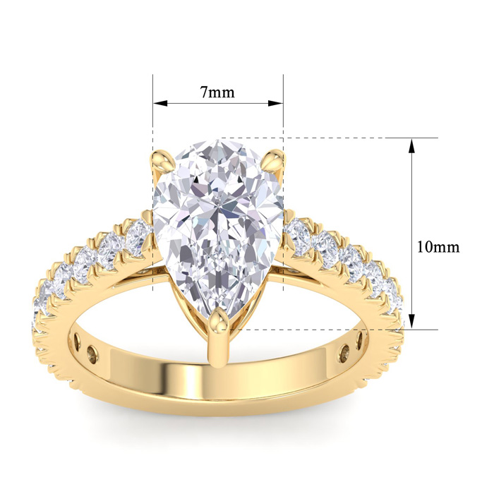 3 Carat Pear Shape Lab Grown Diamond Classic Engagement Ring In 14K Yellow Gold