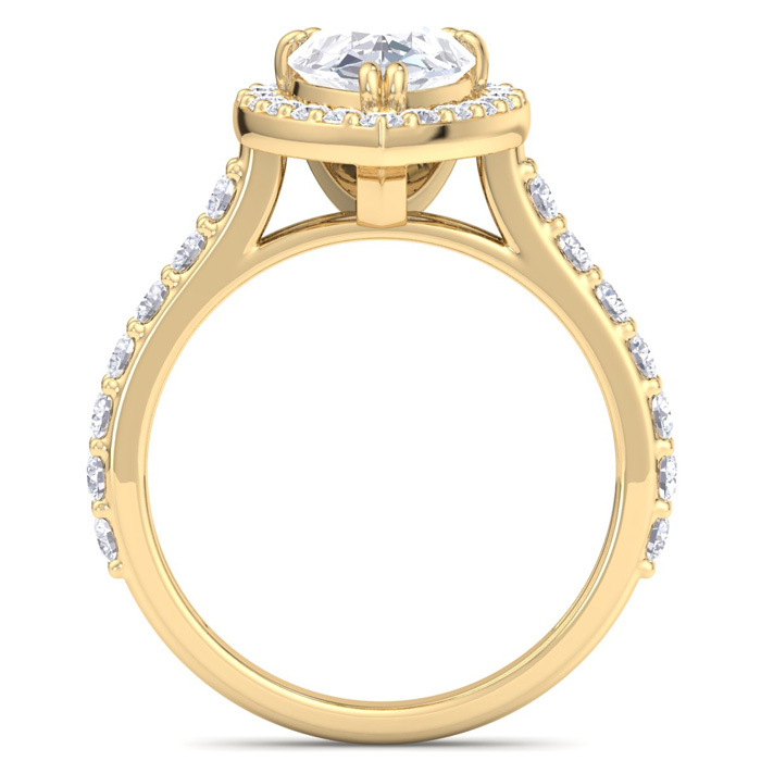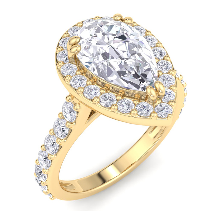 3 Carat Pear Shape Lab Grown Diamond Halo Engagement Ring In 14K Yellow Gold