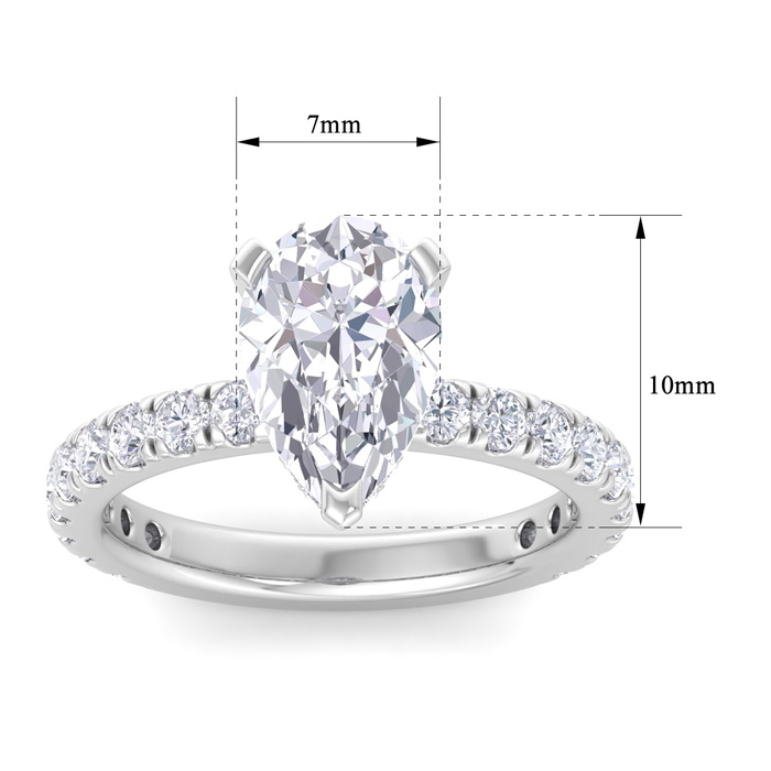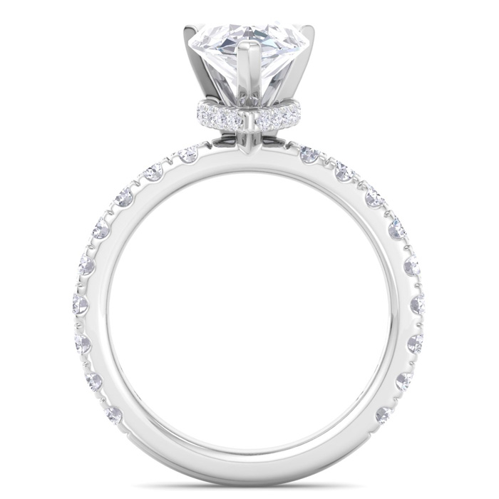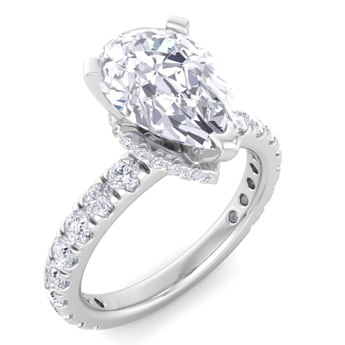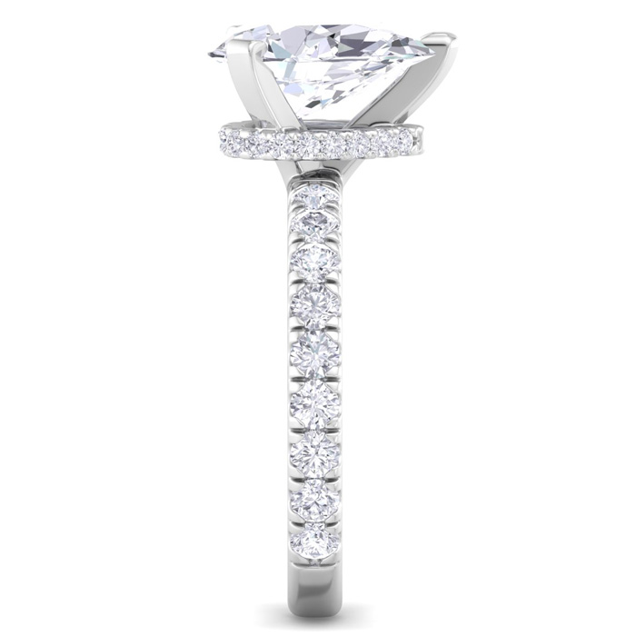3 Carat Pear Shape Lab Grown Diamond Hidden Halo Engagement Ring In 14K White Gold