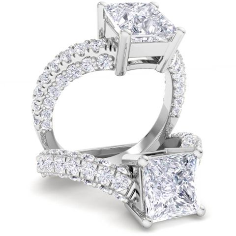 3 Carat Princess Cut Lab Grown Diamond Curved Engagement Ring In 14K White Gold