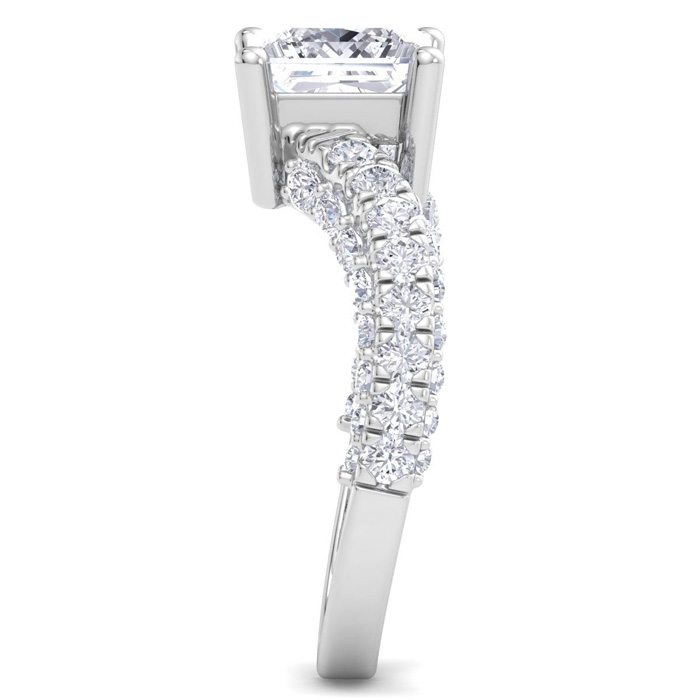 3 Carat Princess Cut Lab Grown Diamond Curved Engagement Ring In 14K White Gold