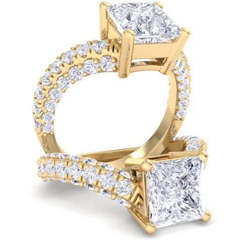 3 Carat Princess Cut Lab Grown Diamond Curved Engagement Ring In 14K Yellow Gold