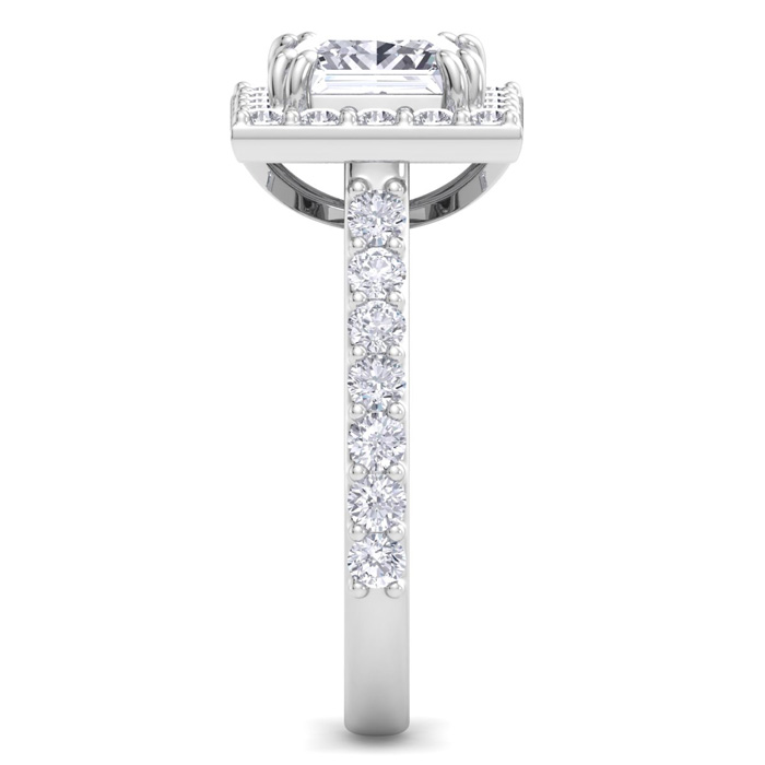 3 Carat Princess Cut Lab Grown Diamond Halo Engagement Ring In 14K White Gold