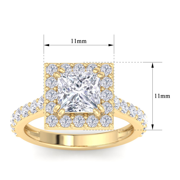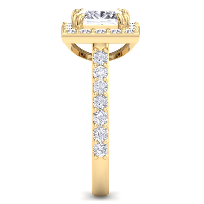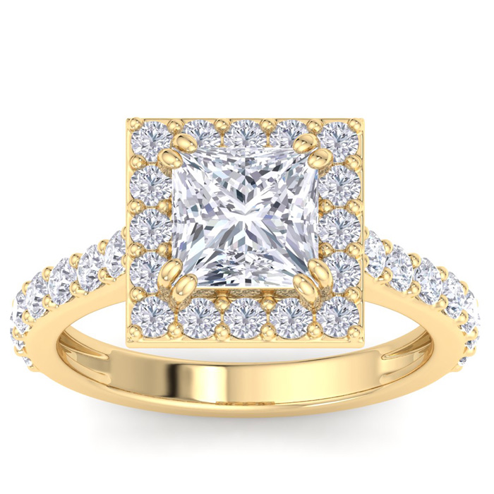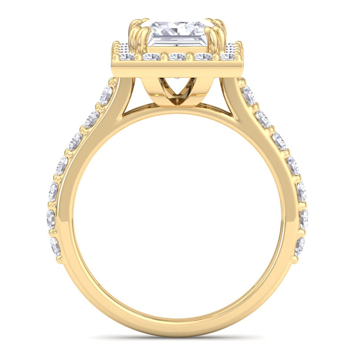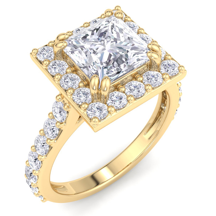 3 Carat Princess Cut Lab Grown Diamond Halo Engagement Ring In 14K Yellow Gold