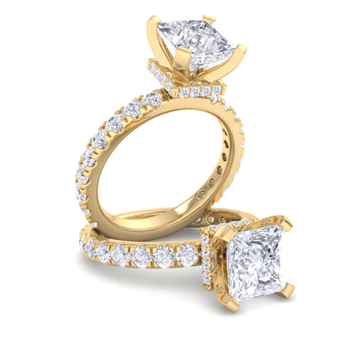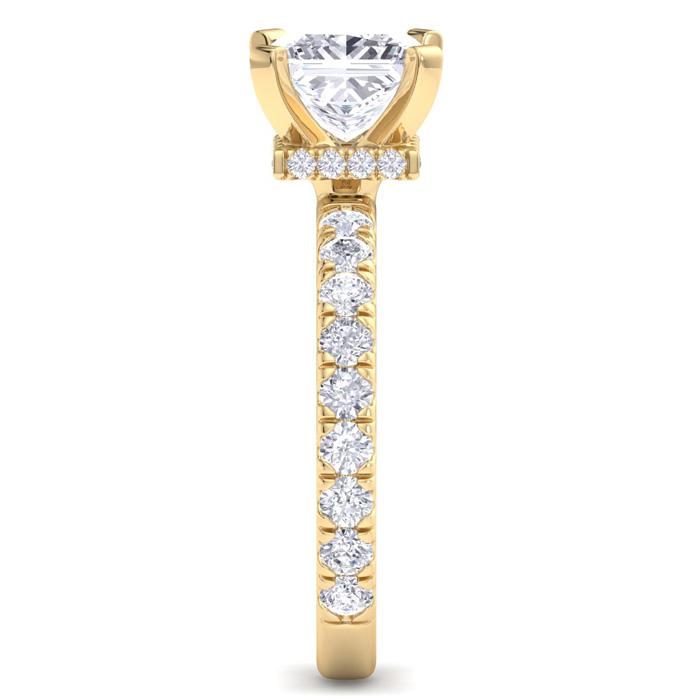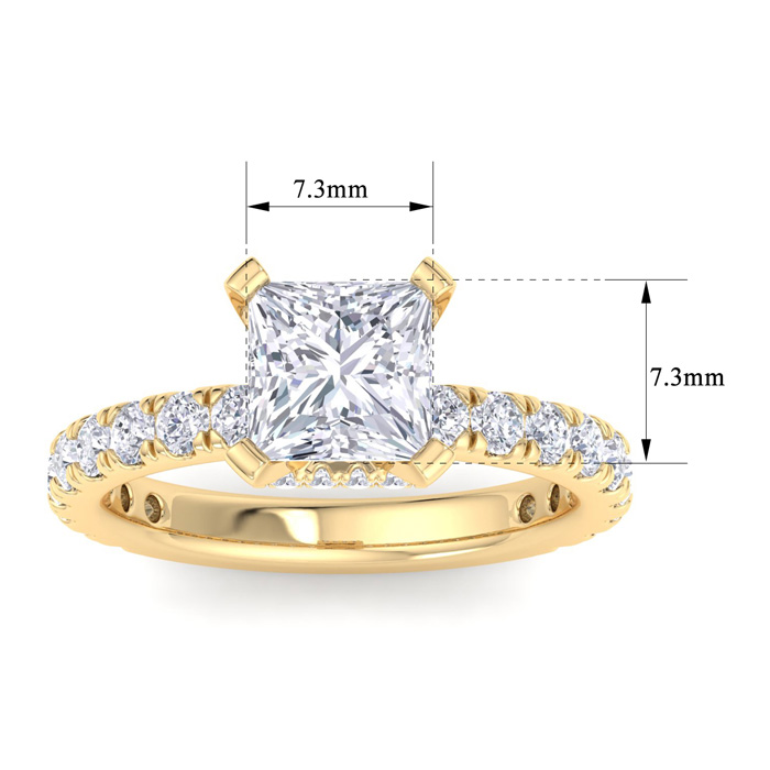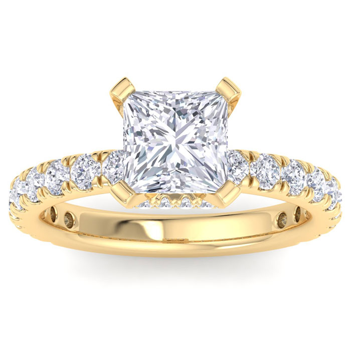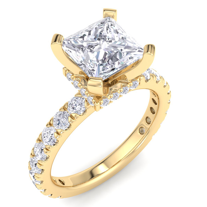 3 Carat Princess Cut Lab Grown Diamond Hidden Halo Engagement Ring In 14K Yellow Gold