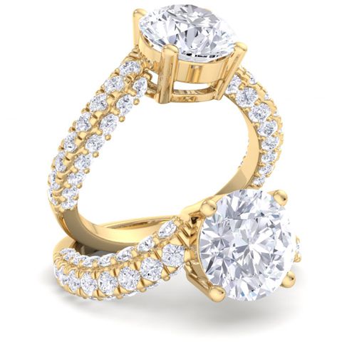 3 Carat Round Lab Grown Diamond Curved Engagement Ring In 14K Yellow Gold