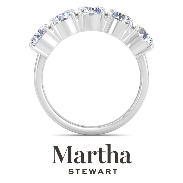 Showcasing class, style and timeless sophistication, the Martha Stewart fine jewelry collection is here to be celebrated. This Martha Stewart lab grown diamond engagement ring features 5 round shape lab grown diamonds in G-H color, VS clarity. Total carat weight is approximately 3 carats. This ring is in 14 karat white gold. This Martha Stewart ring is comfort fit for a luxurious feel on your finger. Whether for a special occasion or to add a touch of elegance to everyday wear, this ring is sure to become a beloved heirloom. Martha Stewart’s dedication to quality and attention to detail are reflected in every piece, making this collection a celebration of timeless beauty and exceptional craftsmanship.