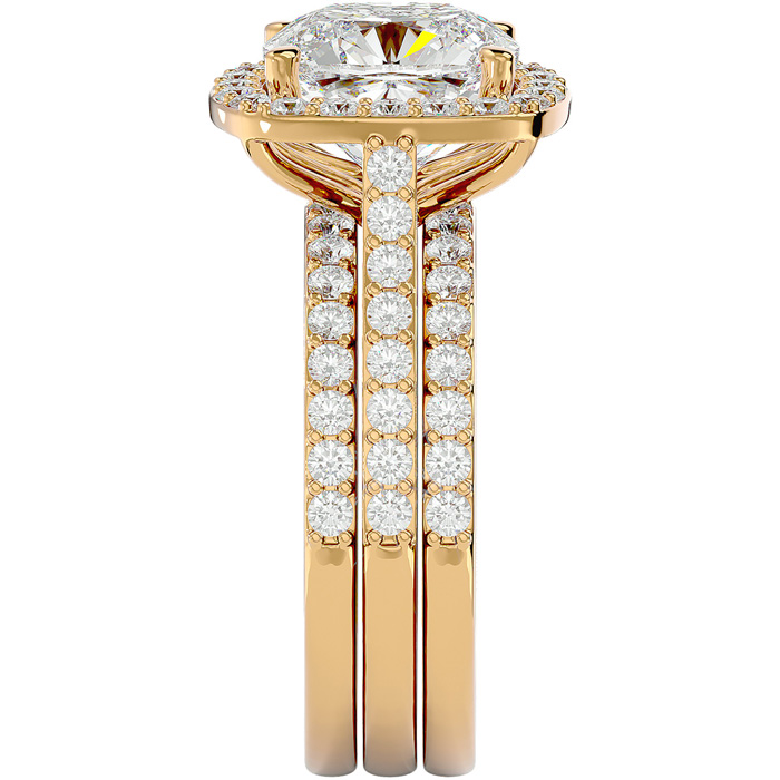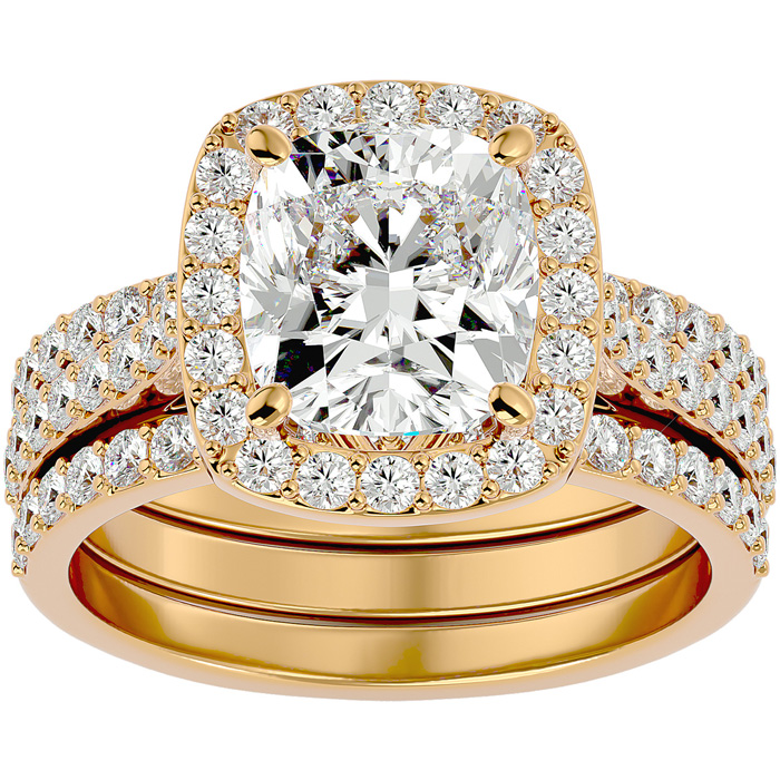 4 1/2 Carat Cushion Cut Halo Lab Grown Diamond Bridal Set In 14 Karat Yellow Gold