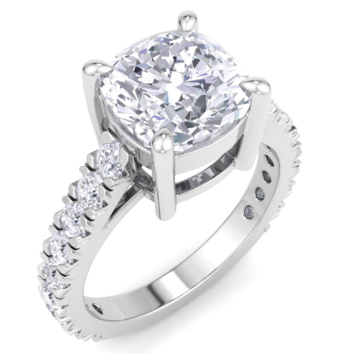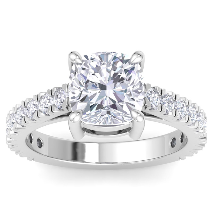 4 Carat Cushion Cut Lab Grown Diamond Classic Engagement Ring In 14K White Gold