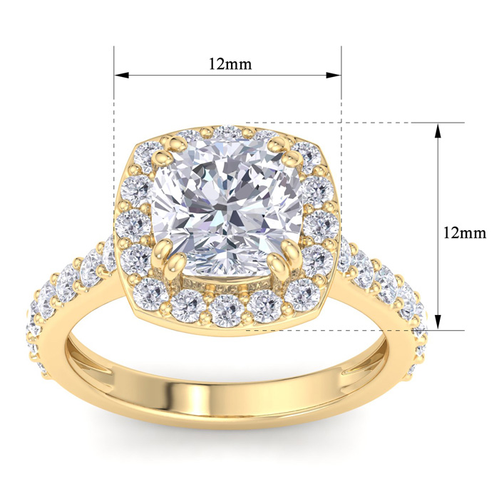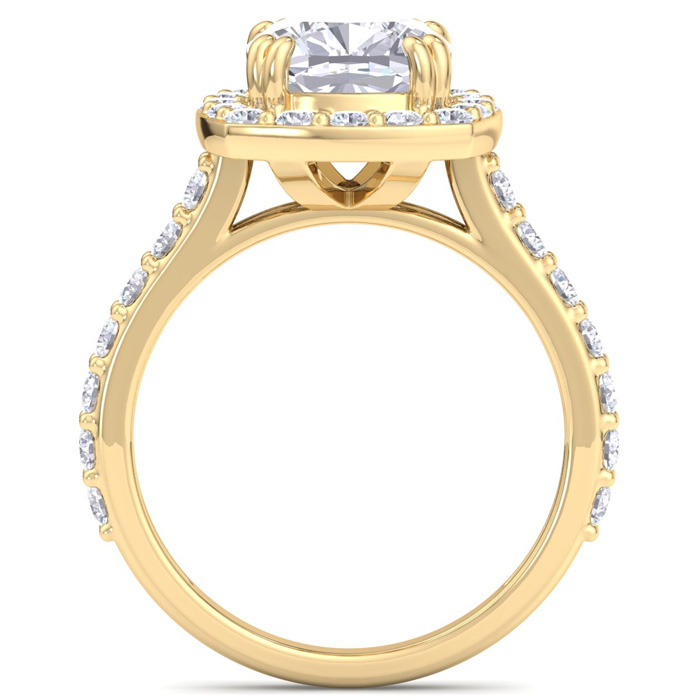 4 Carat Cushion Cut Lab Grown Diamond Halo Engagement Ring In 14K Yellow Gold