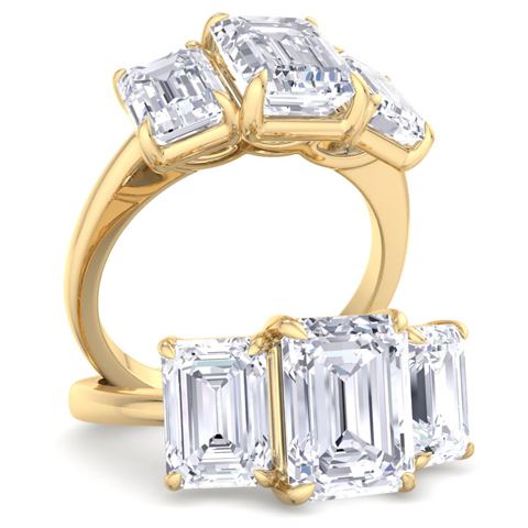 4 Carat Emerald Cut Lab Grown Diamond Three Stone Engagement Ring In 14K Yellow Gold
