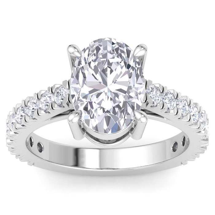 4 Carat Oval Shape Lab Grown Diamond Classic Engagement Ring In 14K White Gold