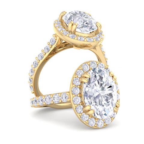 4 Carat Oval Shape Lab Grown Diamond Halo Engagement Ring In 14K Yellow Gold