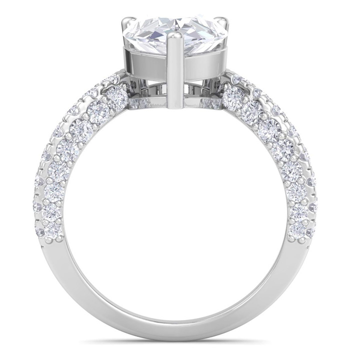4 Carat Pear Shape Lab Grown Diamond Curved Engagement Ring In 14K White Gold