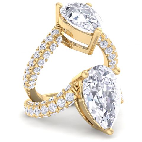 4 Carat Pear Shape Lab Grown Diamond Curved Engagement Ring In 14K Yellow Gold
