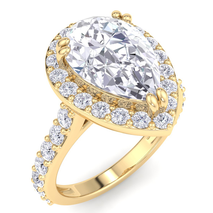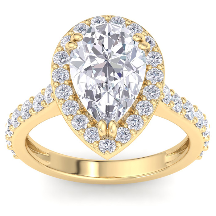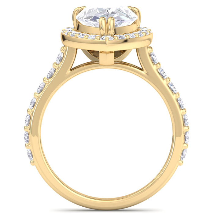 4 Carat Pear Shape Lab Grown Diamond Halo Engagement Ring In 14K Yellow Gold