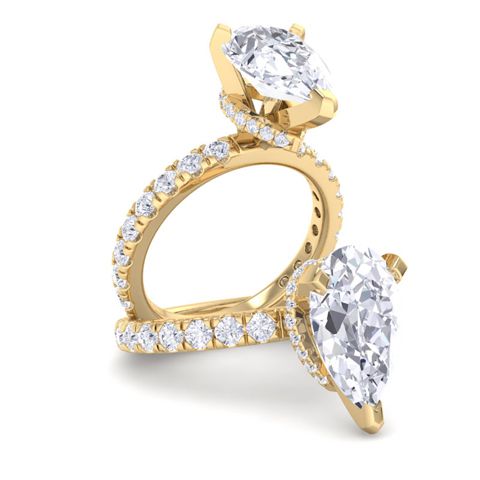 4 Carat Pear Shape Lab Grown Diamond Hidden Halo Engagement Ring In 14K Yellow Gold