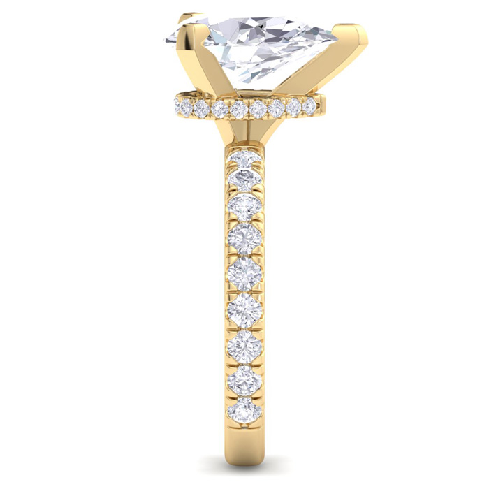 4 Carat Pear Shape Lab Grown Diamond Hidden Halo Engagement Ring In 14K Yellow Gold