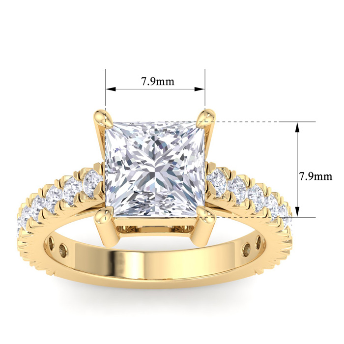 4 Carat Princess Cut Lab Grown Diamond Classic Engagement Ring In 14K Yellow Gold