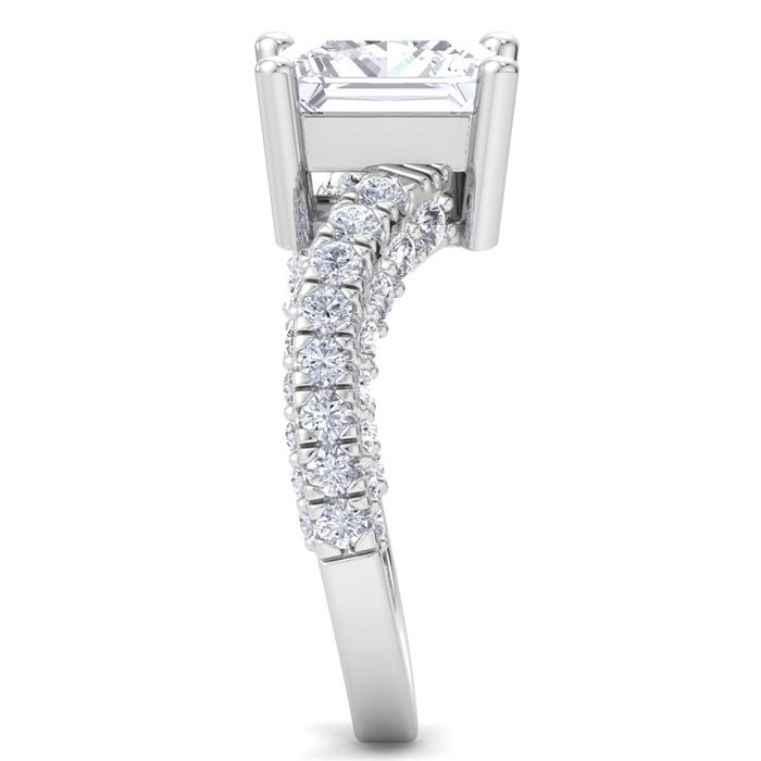 4 Carat Princess Cut Lab Grown Diamond Curved Engagement Ring In 14K White Gold