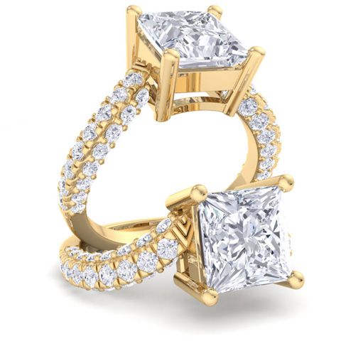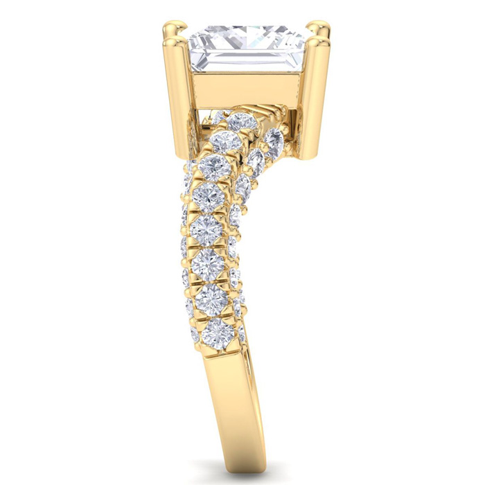4 Carat Princess Cut Lab Grown Diamond Curved Engagement Ring In 14K Yellow Gold