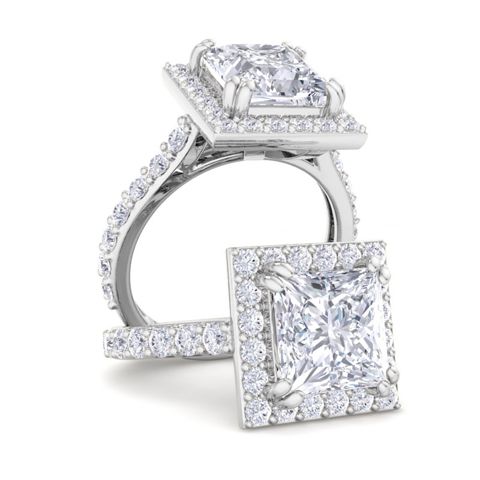 4 Carat Princess Cut Lab Grown Diamond Halo Engagement Ring In 14K White Gold