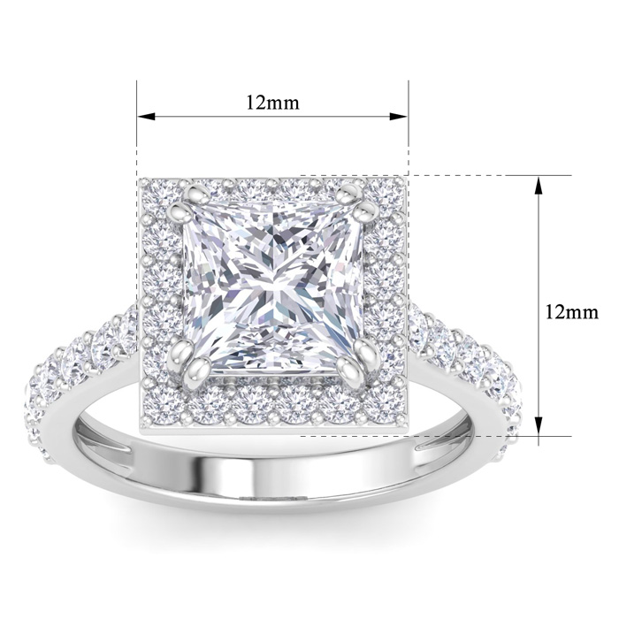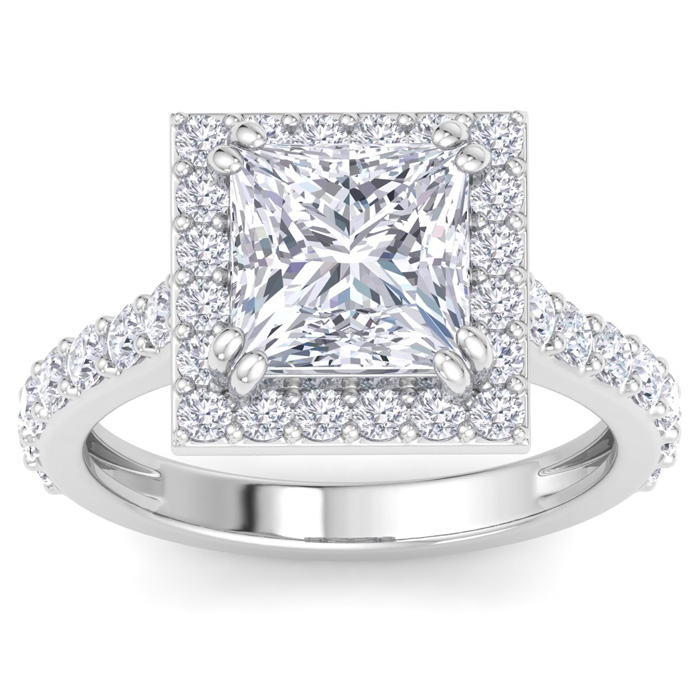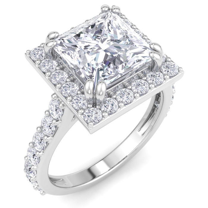 4 Carat Princess Cut Lab Grown Diamond Halo Engagement Ring In 14K White Gold