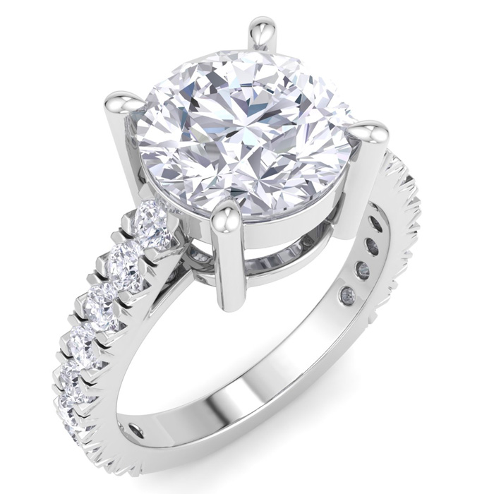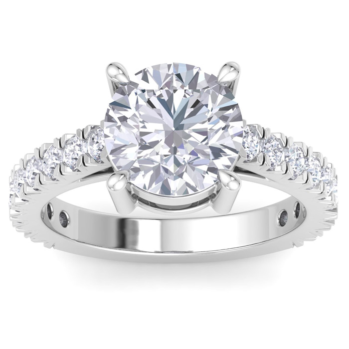 4 Carat Round Lab Grown Diamond Classic Engagement Ring In 14K White Gold