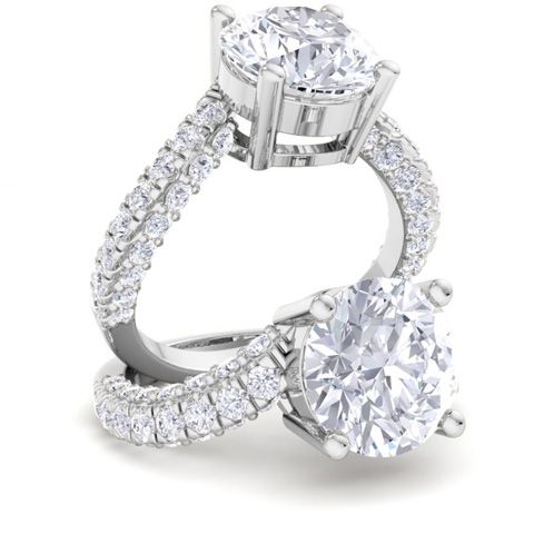 4 Carat Round Lab Grown Diamond Curved Engagement Ring In 14K White Gold