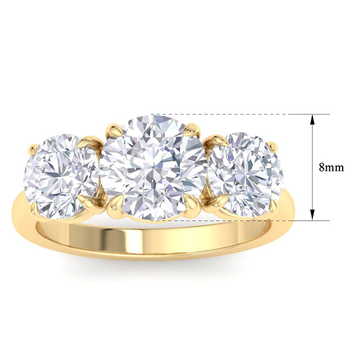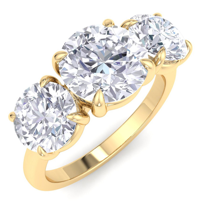 4 Carat Round Lab Grown Diamond Three Stone Engagement Ring In 14K Yellow Gold