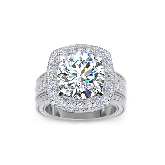 Lab Grown Diamond Engagement Rings 5 1/2 Carat Lab Grown Diamond 4 Carat Center Halo Engagement Ring In 14K White Gold (F-G, VVVS2)