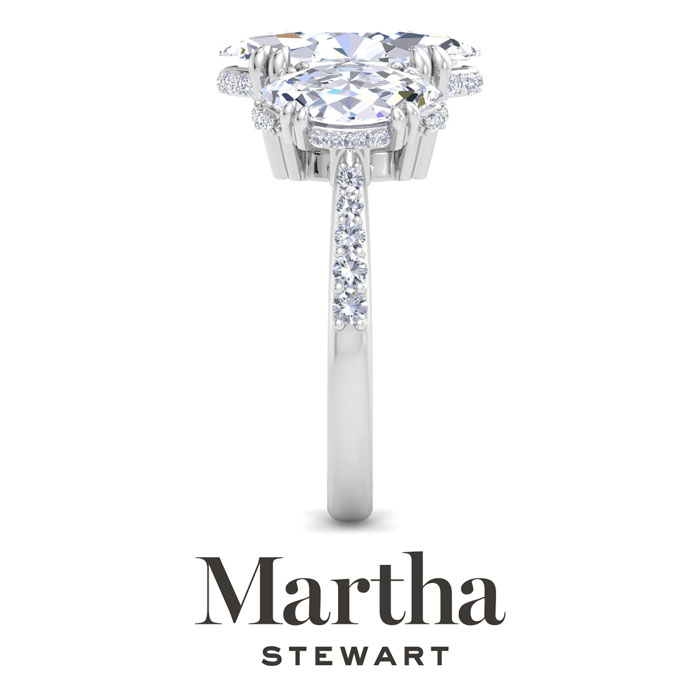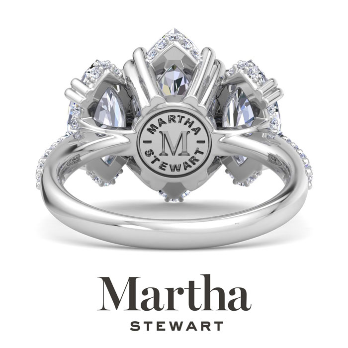 Showcasing class, style and timeless sophistication, the Martha Stewart fine jewelry collection is here to be celebrated. This Martha Stewart lab grown diamond engagement ring features a 3 carat marquise shape center lab grown diamond. It is accented with two marquise shape lab grown diamonds in G-H color, VS clarity. There are 40 additional lab grown diamonds in accenting halos. Total carat weight is approximately 5 1/2 carats. This ring is in Sterling Silver. This Martha Stewart ring has a double-prong setting and is comfort fit for a luxurious feel on your finger. This ring also has a patent pending mirrored setting which increases the primary diamond's brilliance and beauty. Whether for a special occasion or to add a touch of elegance to everyday wear, this ring is sure to become a beloved heirloom. Martha Stewart’s dedication to quality and attention to detail are reflected in every piece, making this collection a celebration of timeless beauty and exceptional craftsmanship.