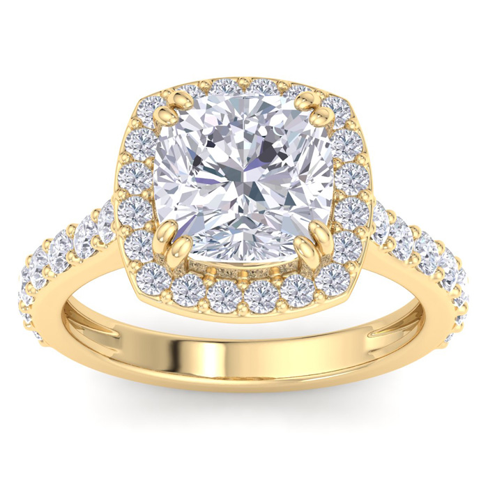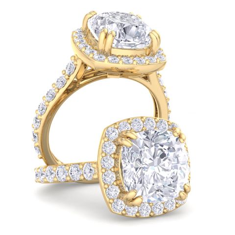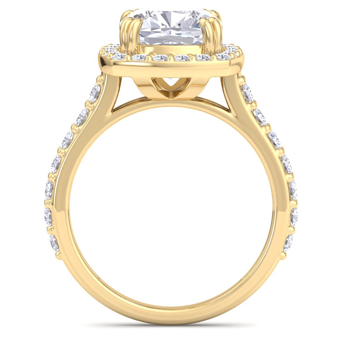 5 Carat Cushion Cut Lab Grown Diamond Halo Engagement Ring In 14K Yellow Gold