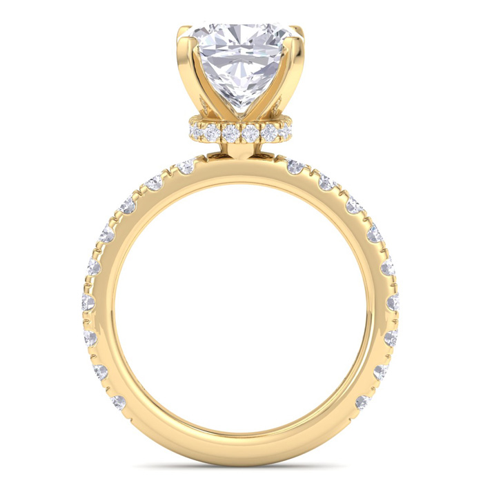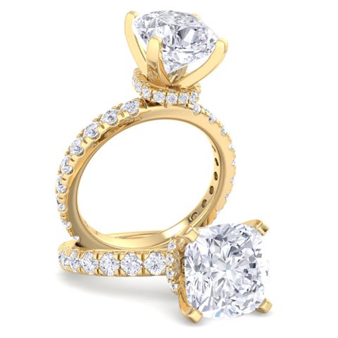 5 Carat Cushion Cut Lab Grown Diamond Hidden Halo Engagement Ring In 14K Yellow Gold