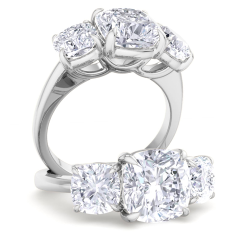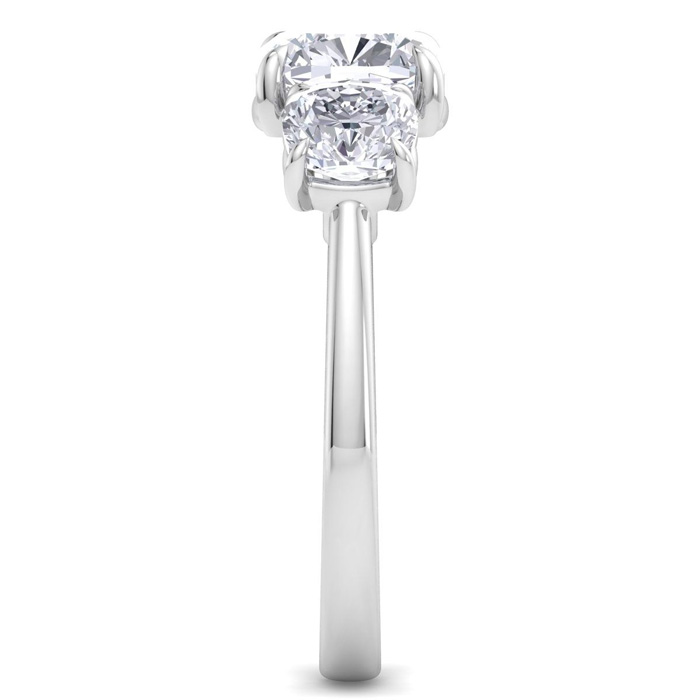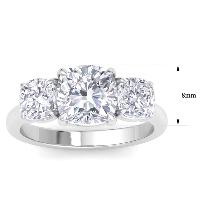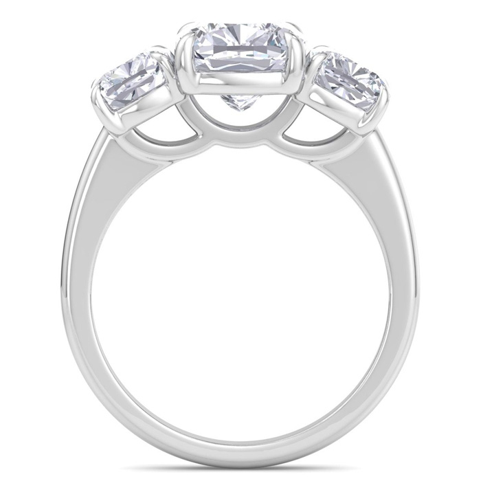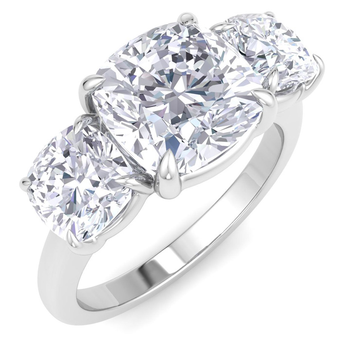 5 Carat Cushion Cut Lab Grown Diamond Three Stone Engagement Ring In 14K White Gold