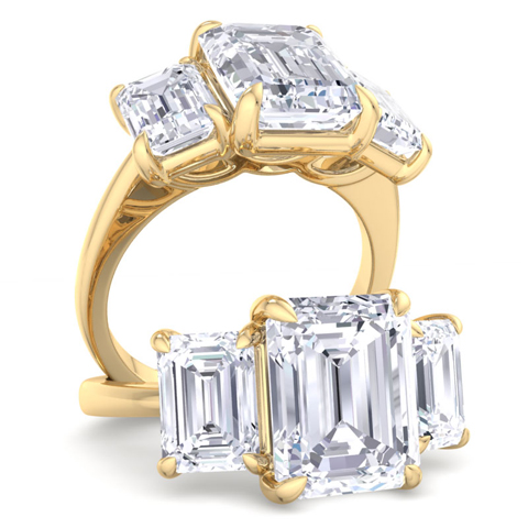 5 Carat Emerald Cut Lab Grown Diamond Three Stone Engagement Ring In 14K Yellow Gold