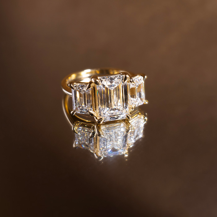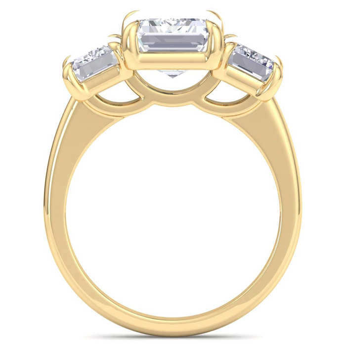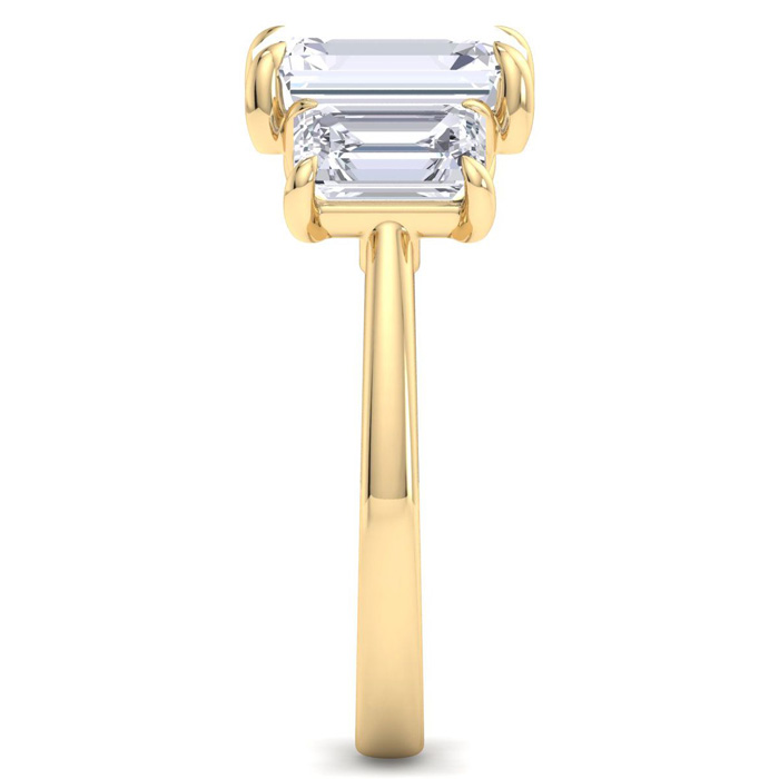 5 Carat Emerald Cut Lab Grown Diamond Three Stone Engagement Ring In 14K Yellow Gold