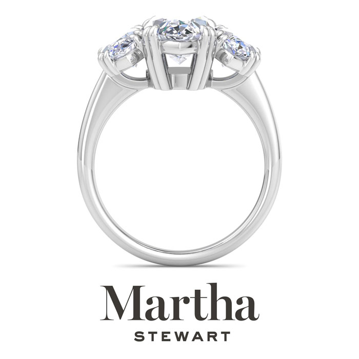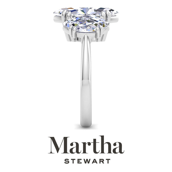 Showcasing class, style and timeless sophistication, the Martha Stewart fine jewelry collection is here to be celebrated. This Martha Stewart lab grown diamond engagement ring features a 3 carat marquise shape center lab grown diamond. It is accented with two marquise shape lab grown diamonds in G-H color, VS clarity. Total carat weight is approximately 5 carats. This ring is in Sterling Silver. This Martha Stewart ring has a double-prong setting and is comfort fit for a luxurious feel on your finger. This ring also has a patent pending mirrored setting which increases the primary diamond's brilliance and beauty. Whether for a special occasion or to add a touch of elegance to everyday wear, this ring is sure to become a beloved heirloom. Martha Stewart’s dedication to quality and attention to detail are reflected in every piece, making this collection a celebration of timeless beauty and exceptional craftsmanship.