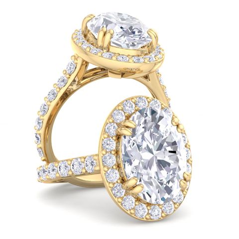 5 Carat Oval Shape Lab Grown Diamond Halo Engagement Ring In 14K Yellow Gold