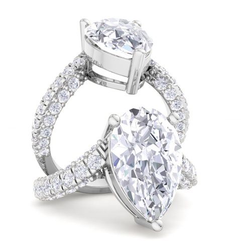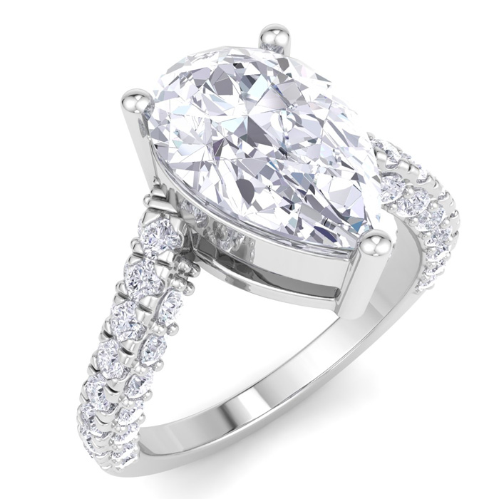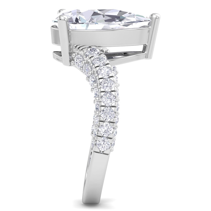 5 Carat Pear Shape Lab Grown Diamond Curved Engagement Ring In 14K White Gold