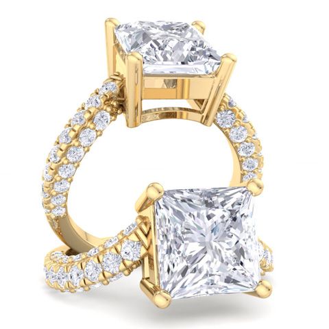 5 Carat Princess Cut Lab Grown Diamond Curved Engagement Ring In 14K Yellow Gold