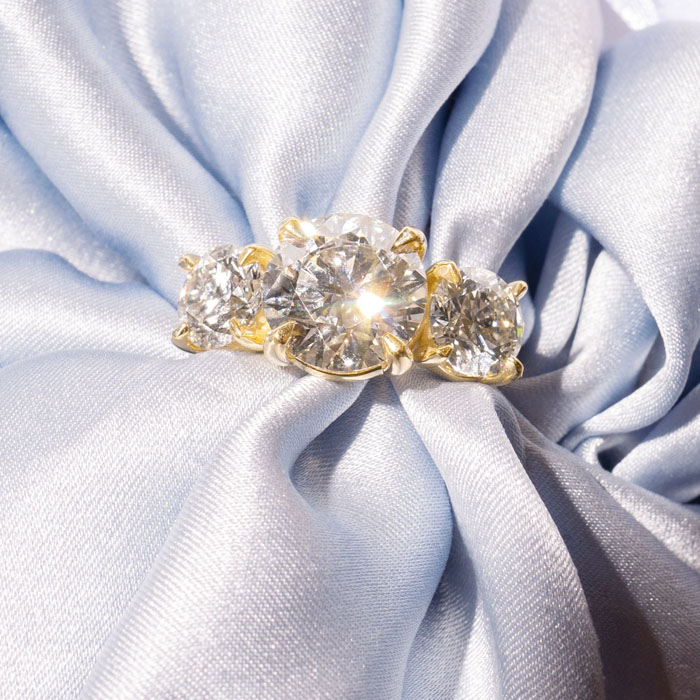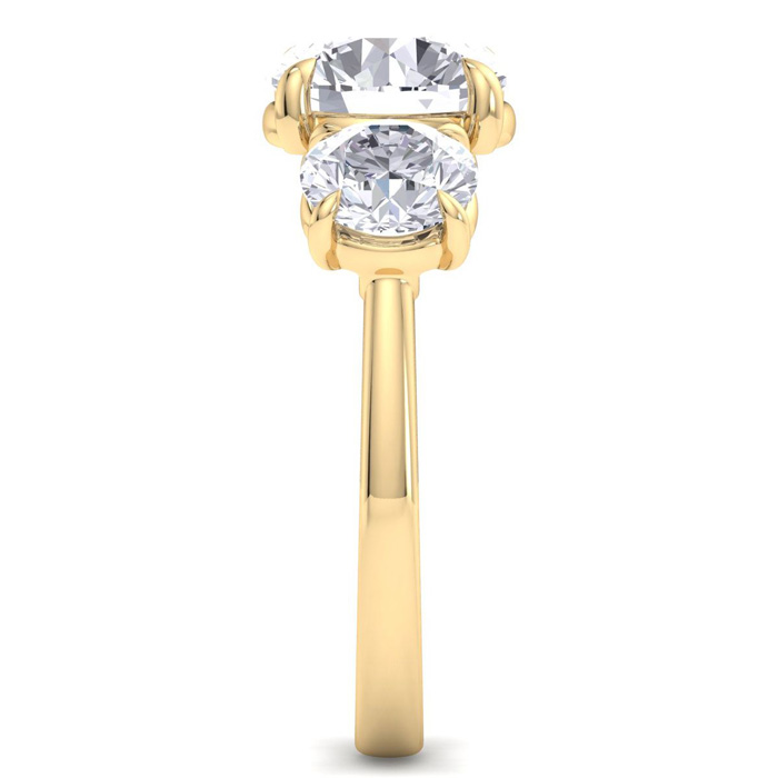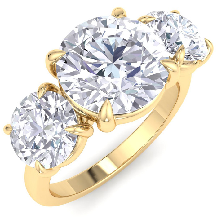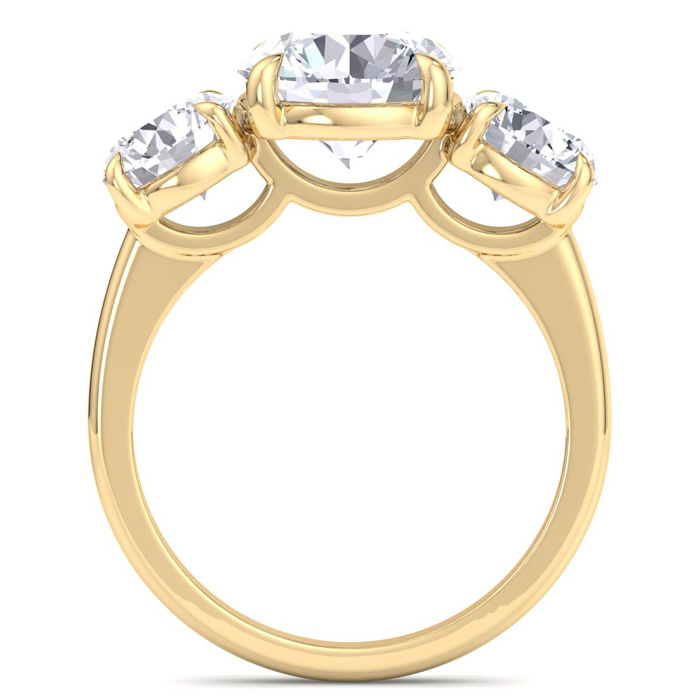 5 Carat Round Lab Grown Diamond Three Stone Engagement Ring In 14K Yellow Gold