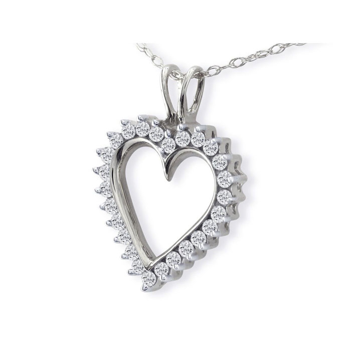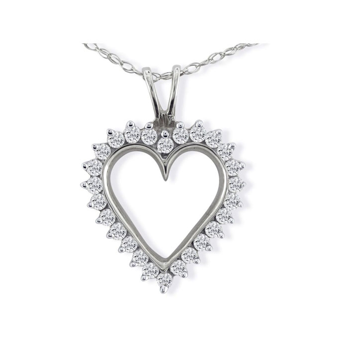 1 Carat Diamond Heart Necklace In Sterling Silver With Free Chain, 18 Inches