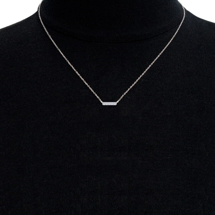 Delicate and elegant! The diamonds are small but very sparkly, and the bar design is simple yet classy. Perfect for layering or wearing alone for a subtle touch of shine..--Jan.