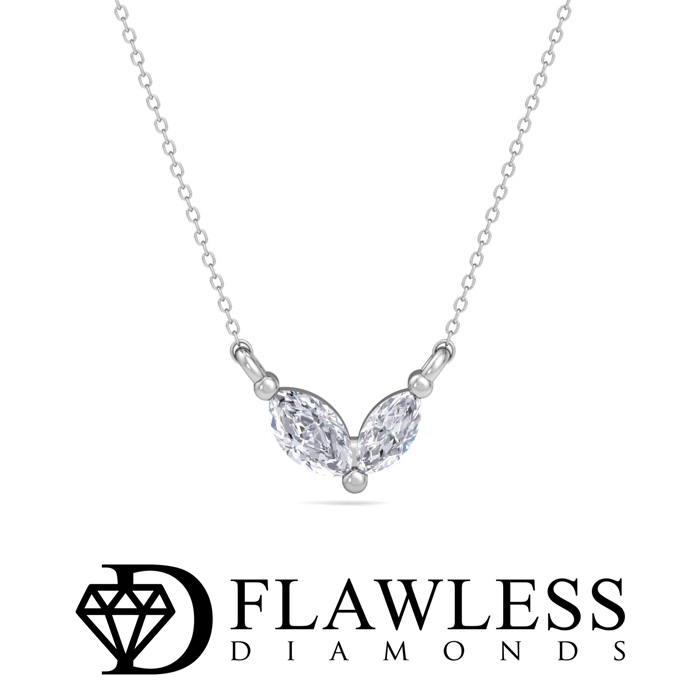 D Flawless Diamonds™ 0.14 Carat Diamond Two Stone Marquise Necklace, 18 Inches