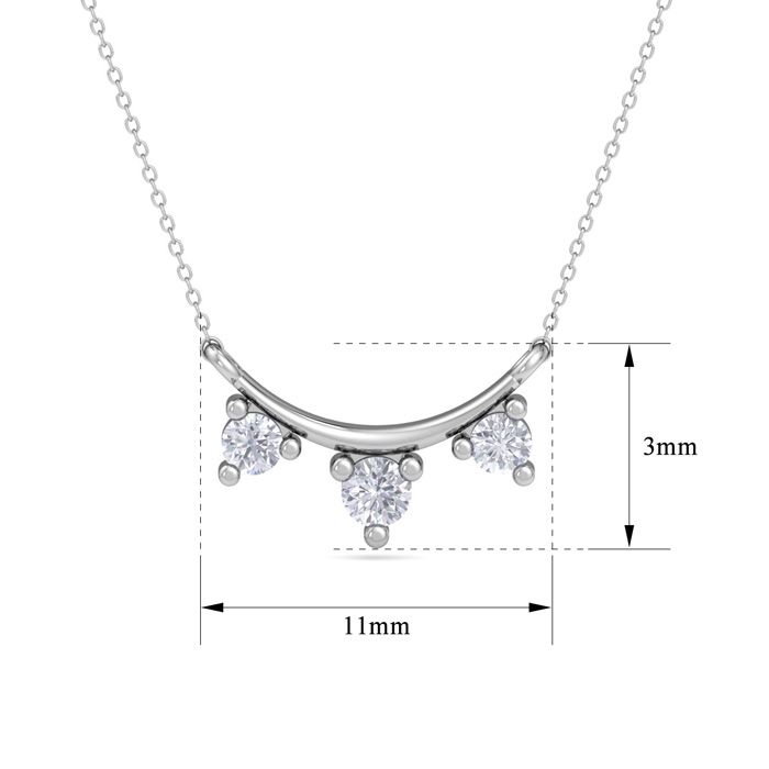 This diamond necklace features 3 sparkling lab grown diamonds. Total carat weight is 0.14 carats. Diamond color is G-H, diamond clarity is VS. This necklace is in sterling silver and comes with an 18 inch cable chain with a spring-ring clasp.