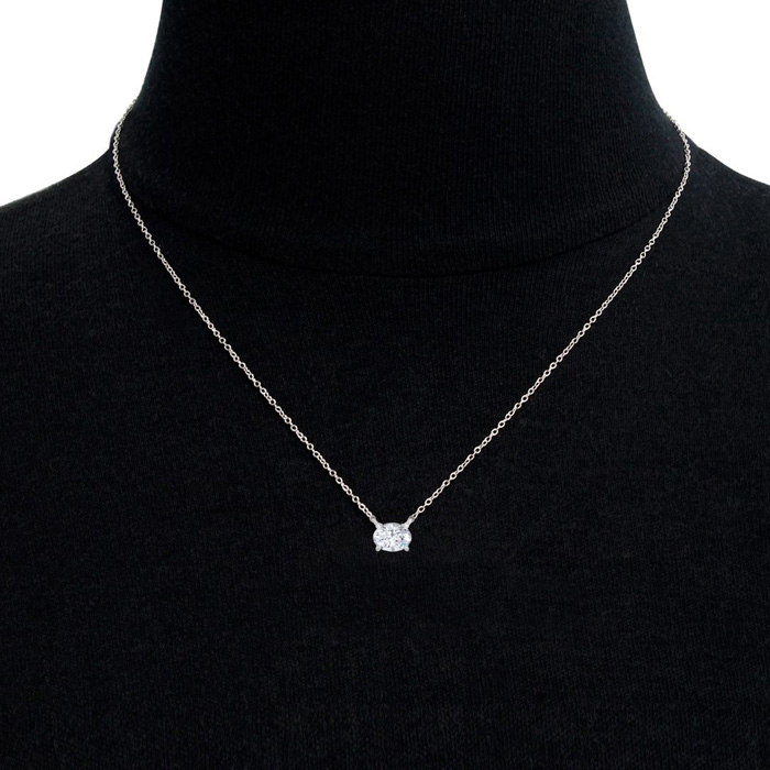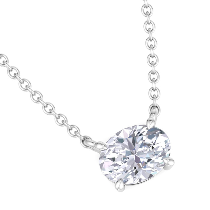 1 1/2 Carat Oval Shape Lab Grown Diamond Solitaire Necklace In 14 Karat White Gold