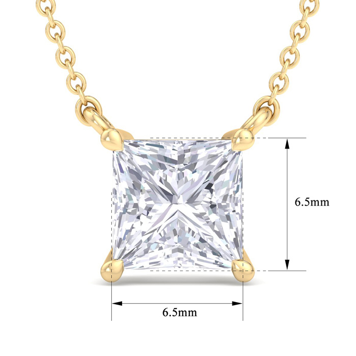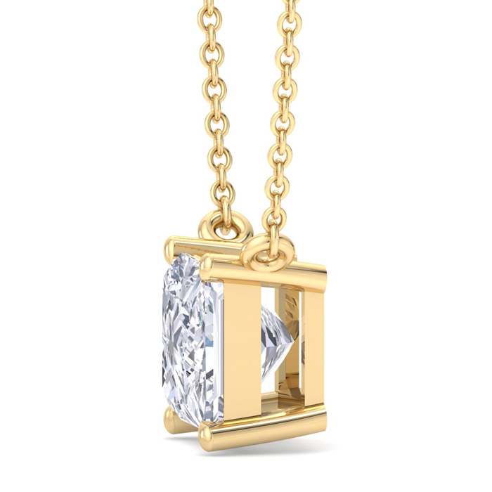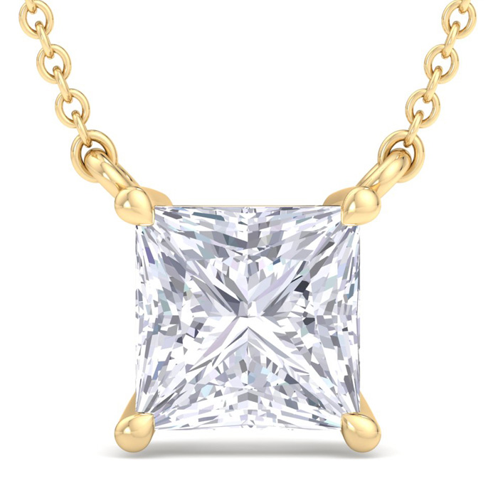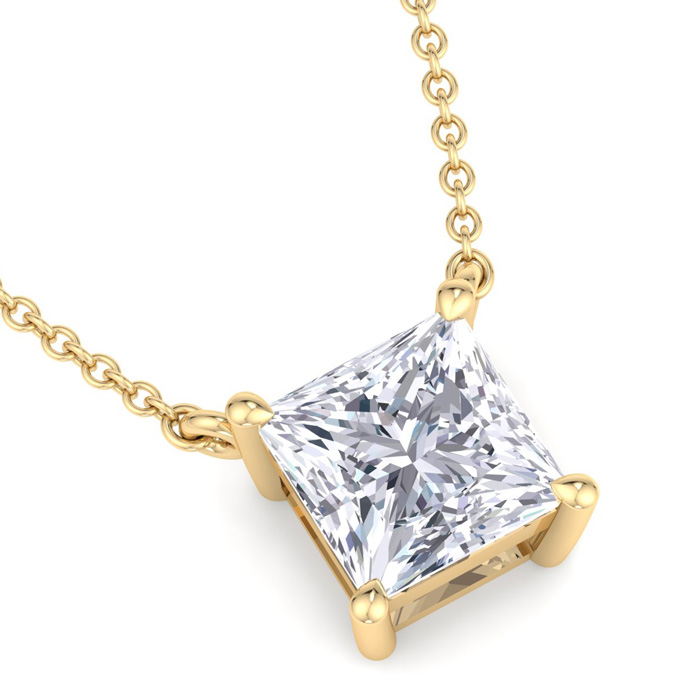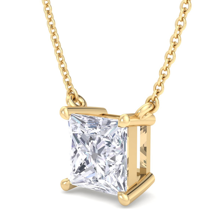 1 1/2 Carat Princess Cut Lab Grown Diamond Solitaire Necklace In 14 Karat Yellow Gold