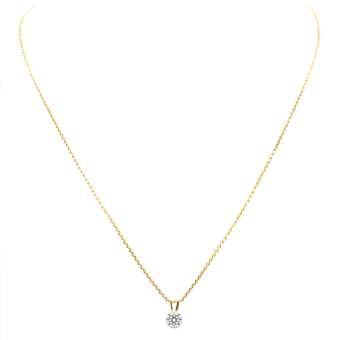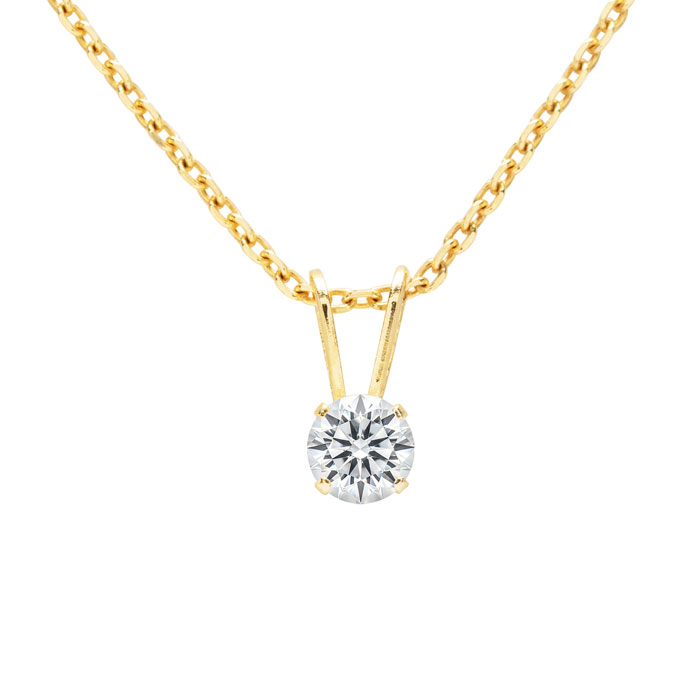 1/10 Carat Lab Grown Diamond Solitaire Necklace In Yellow Gold With Free Chain