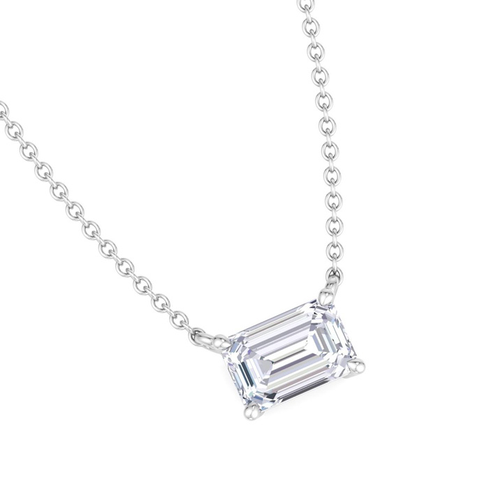 1/2 Carat Emerald Cut Lab Grown Diamond Solitaire Necklace In Sterling Silver
